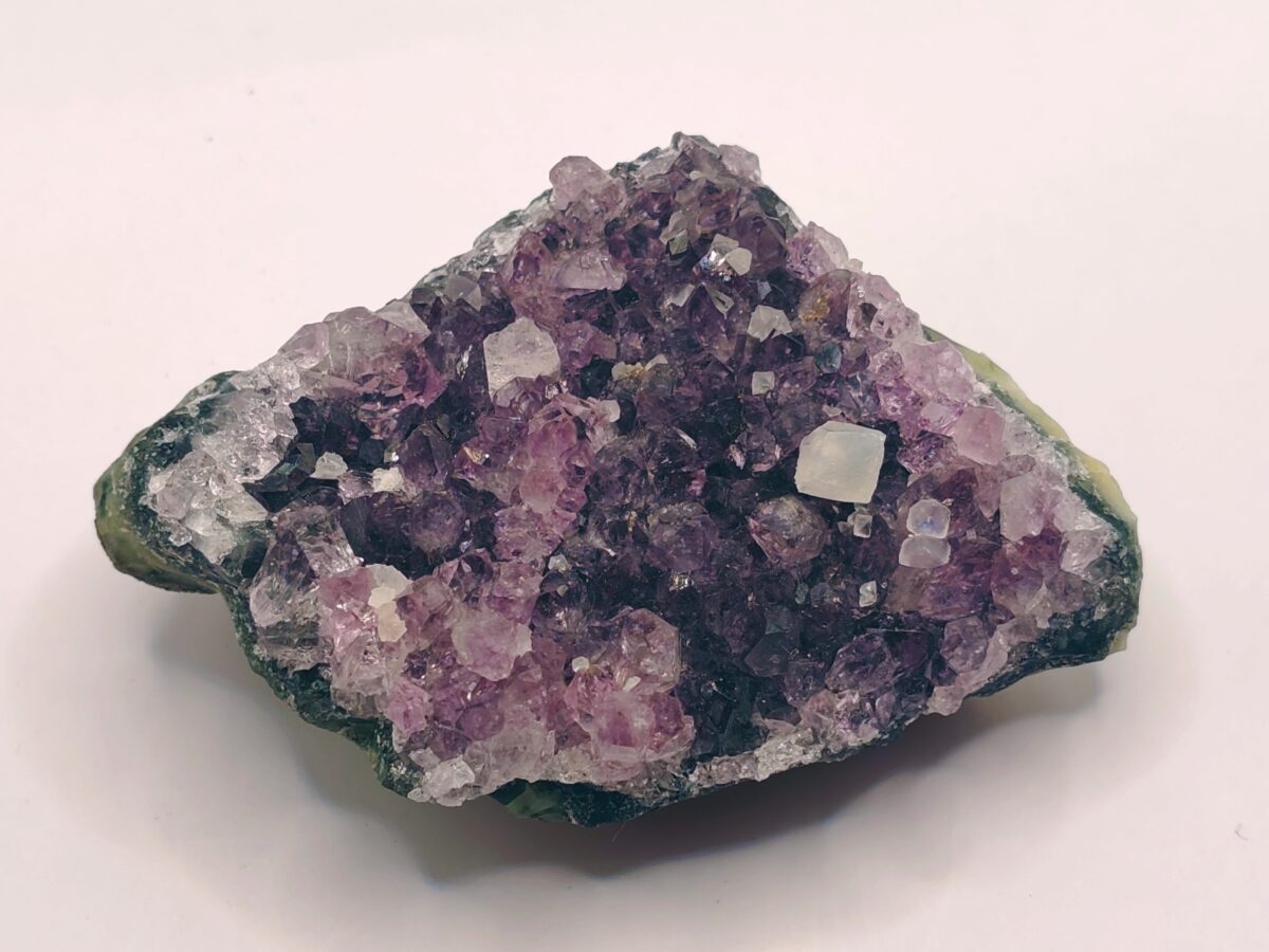 Táto menšia drúza Ametystu predstavuje zhluk fialových kryštálov narastených na materskej hornine. Je to silný energetický žiarič, ktorý nielen zdobí interiér, ale predovšetkým čistí priestor od negatívnych energií a geopatogénnych zón. Ametystové drúzy sa často umiestňujú do spální na podporu pokojného spánku alebo do obývacích priestorov na udržanie harmónie v rodine.