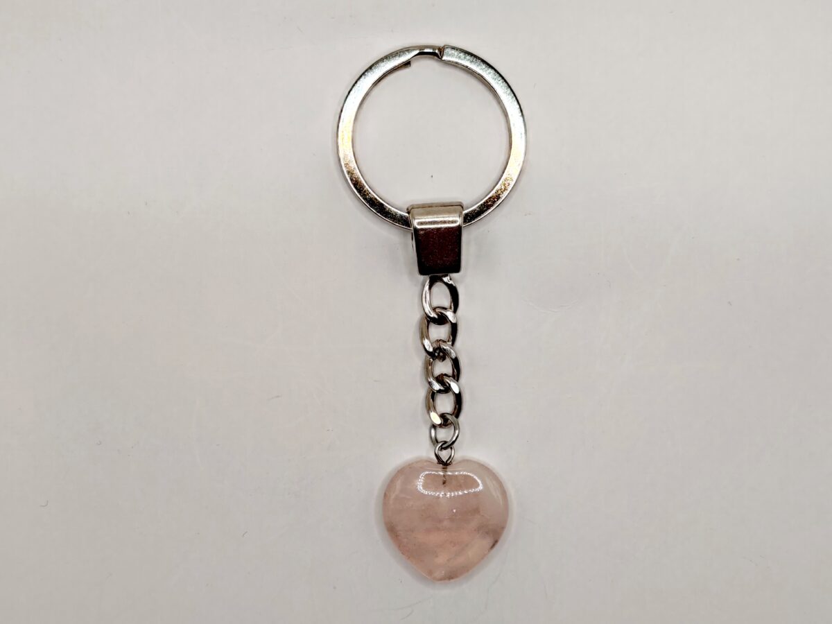 Nežná kľúčenka s brúseným srdiečkom z prírodného Ruženínu. Kameň lásky a harmónie, ktorý vás bude sprevádzať na každom kroku a pripomínať dôležitosť sebalásky a nehy.