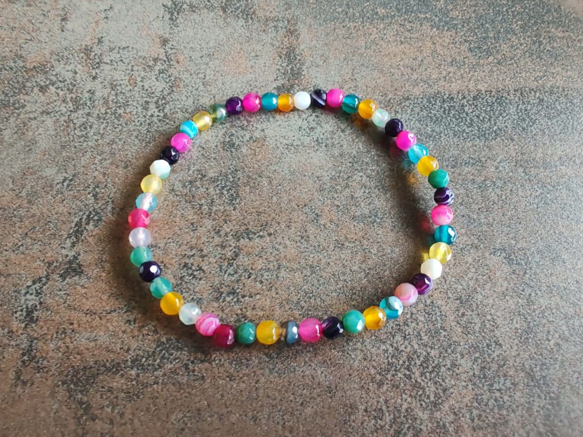 Náramok guličky ACHÁT farebný fazetovaný dámsky 4 mm