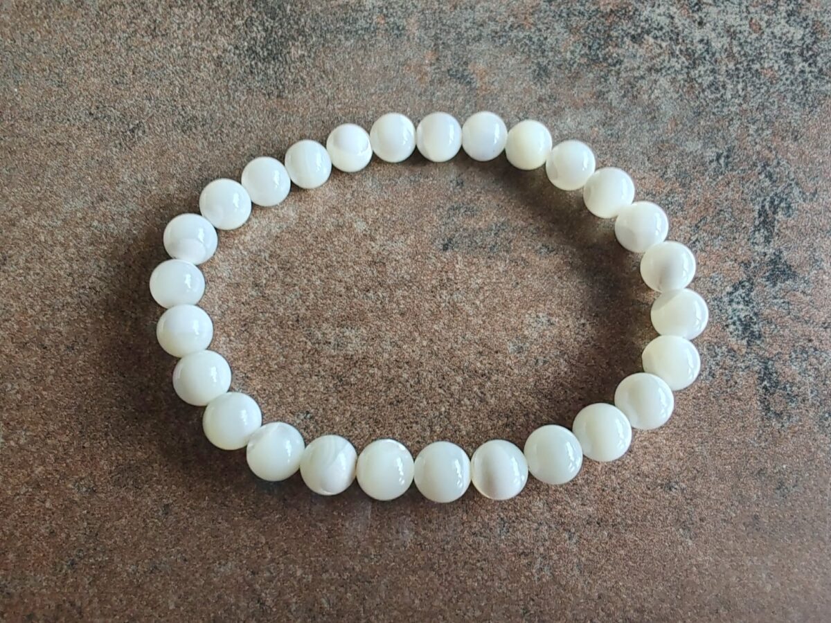 Náramok z korálok veľkosti 6 mm z PERLETE. Je navlečený na odolnej elastickej gumičke a má univerzálnu veľkosť pre obvod zápästia 15 -18 cm. Ilustratívne zobrazenie. Farba sa môže pri každom kuse mierne líšiť. Perleť sa považuje sa za ochranný kameň, ktorý chráni pred negatívnymi vplyvmi, nešťastím a nehodami. Prináša hlboký vnútorný pokoj, podporuje intuíciu, predstavivosť a citlivosť. Pomáha harmonizovať emócie a prináša pocit bezpečia.