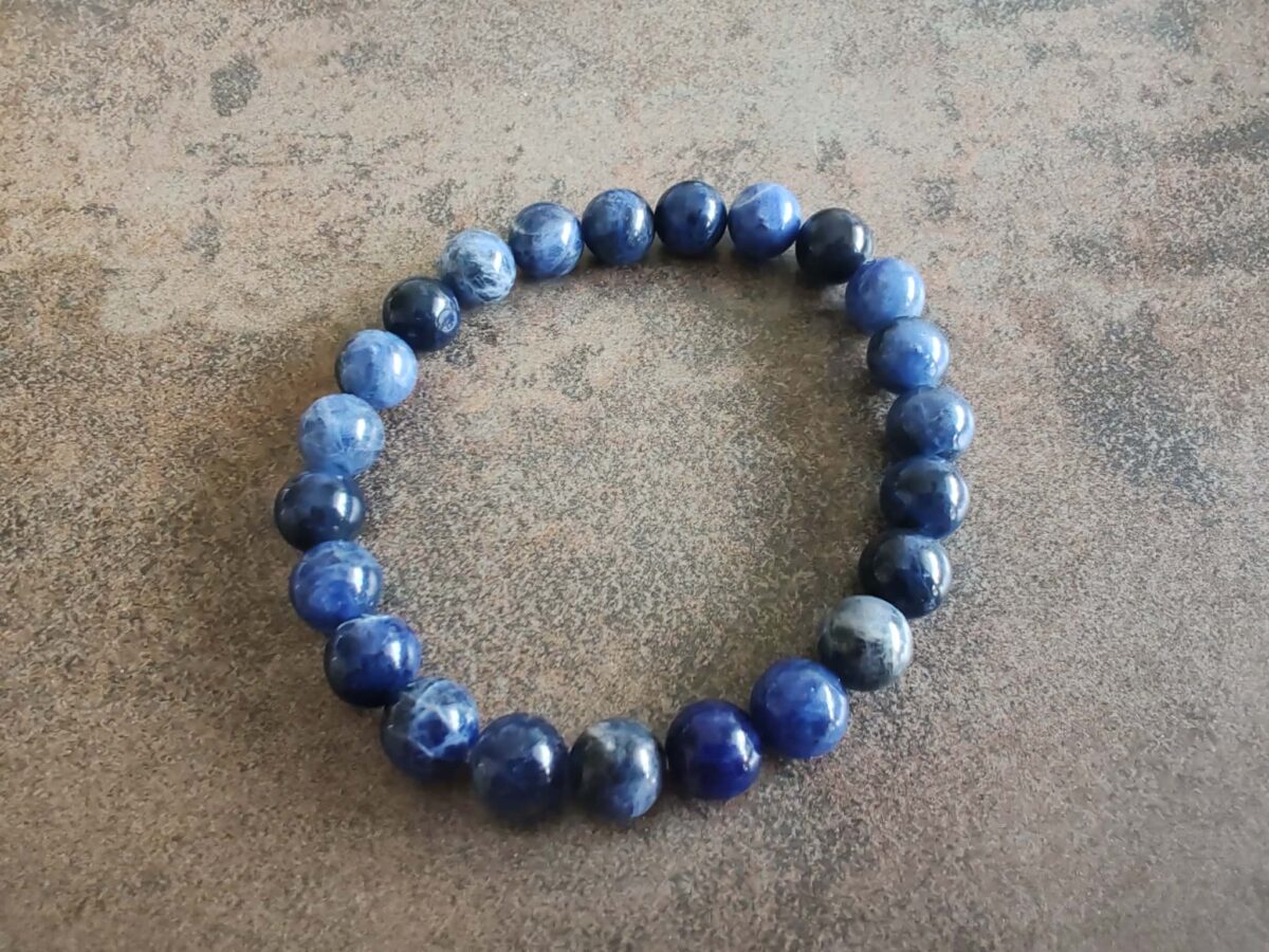 Elegantný dámsky náramok z guličiek veľkosti 8 mm z kameňa SODALIT. Sodalit je vďaka svojej tmavomodrej farbe často spájaný s hĺbkou mysle a múdrosťou. Pomáha spájať logiku s intuíciou, prehlbuje sústredenie a prináša poriadok do chaotických myšlienok. Je to ideálny doplnok pre študentov, rečníkov alebo každého, kto hľadá mentálnu jasnosť v každodennom živote. Je navlečený na odolnej elastickej gumičke a má univerzálnu veľkosť pre obvod zápästia 15 – 18 cm. Ilustratívne zobrazenie. Farba sa môže pri každom kuse mierne líšiť.