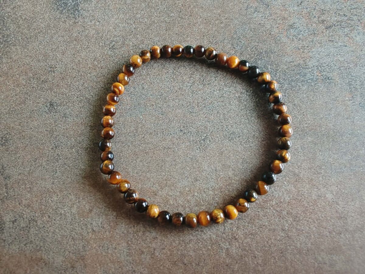 Náramok z korálok veľkosti 4 mm z prírodného tigrieho oka. Je navlečený na odolnej gumičke a má univerzálnu veľkosť pre obvod zápästia 15 -18 cm. . Ilustratívne zobrazenie. Farba sa môže pri každom kuse mierne líšiť.
