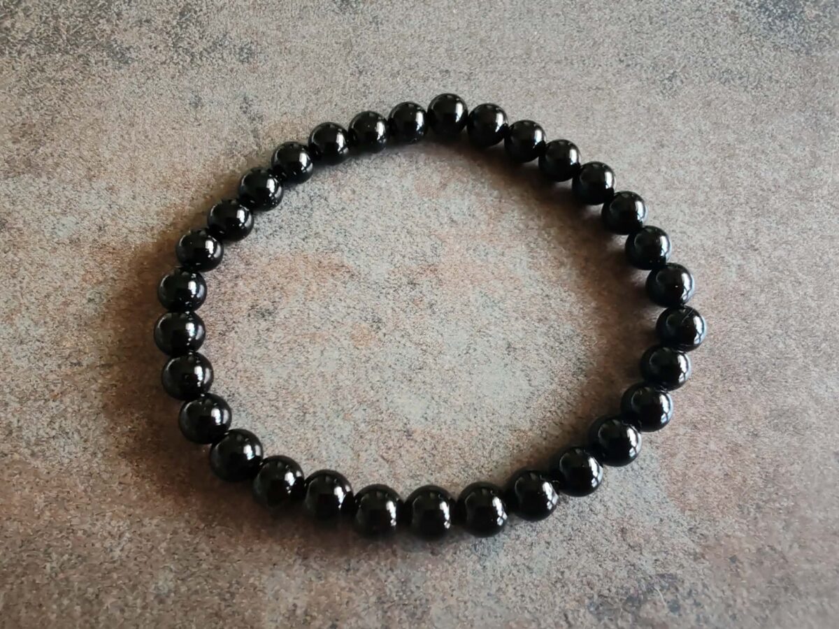 Náramok z korálok veľkosti 6 mm z prírodného čierneho TURMALÍNU. Je navlečený na odolnej elastickej gumičke a má univerzálnu veľkosť pre obvod zápästia 15 -18 cm. Ilustratívne zobrazenie. Farba sa môže pri každom kuse mierne líšiť. Čierny turmalín je jedným z najsilnejších ochranných kameňov, ktorý pôsobí ako energetický štít. Pohlcuje a odráža negatívnu energiu, chráni pred psychickými útokmi a urieknutím.