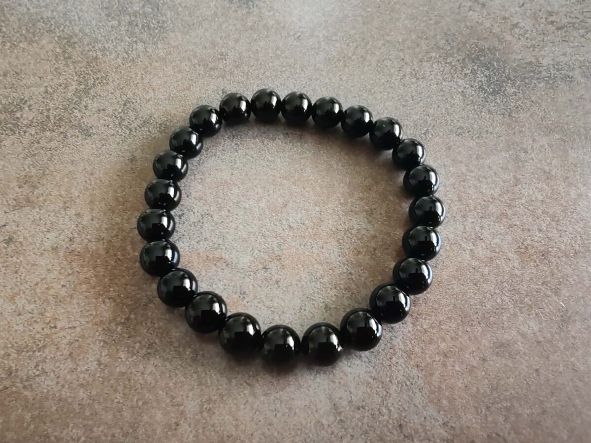 Náramok z korálok veľkosti 8 mm z prírodného čierneho TURMALÍNU. Je navlečený na odolnej elastickej gumičke a má univerzálnu veľkosť pre obvod zápästia 15 -18 cm. Ilustratívne zobrazenie. Farba sa môže pri každom kuse mierne líšiť. Čierny turmalín je jedným z najsilnejších ochranných kameňov, ktorý pôsobí ako energetický štít. Pohlcuje a odráža negatívnu energiu, chráni pred psychickými útokmi a urieknutím.