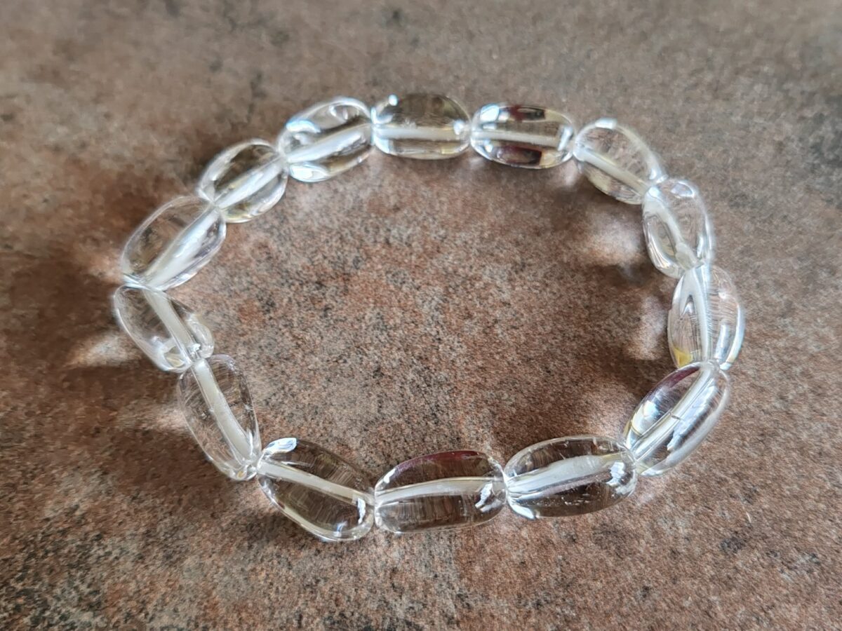 Štýlový dámsky náramok z nepravidelných korálok veľkosti 8 – 12 mm z prírodného KRIŠTÁĽU v AA kvalite . Je navlečený na odolnej elastickej gumičke a má univerzálnu veľkosť pre obvod zápästia 15 -18 cm. Ilustratívne zobrazenie. Farba sa môže pri každom kuse mierne líšiť.