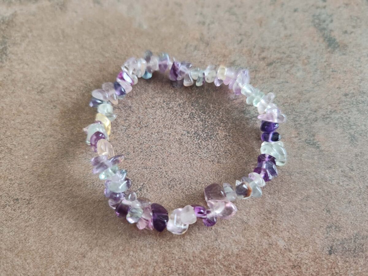 Náramok z leštených nepravidelných kamenných korálok veľkosti 4-8 mm z prírodného fluoritu. Je navlečený na odolnej gumičke a má univerzálnu veľkosť pre obvod zápästia 15 -18 cm. Ilustratívne zobrazenie. Farba sa môže pri každom kuse mierne líšiť. Fluorit je obdarený silnou ochrannou mocou, najmä na duševnej úrovni. Uvádza do súladu citovú, telesnú i duševnú rovinu osobnosti a vnáša do života poriadok.