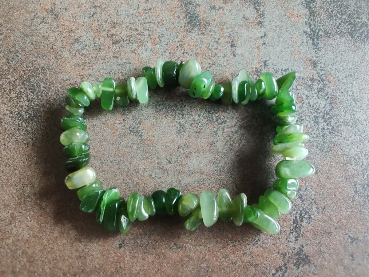 Vzácny náramok z leštených nepravidelných kamenných korálok veľkosti 4-8 mm z prírodného NEFRITU. Je navlečený na odolnej gumičke a má univerzálnu veľkosť pre obvod zápästia 15 -18 cm. Ilustratívne zobrazenie. Farba sa môže pri každom kuse mierne líšiť. Nefrit je ochranný kameň, ktorý sa v histórii cenil viac ako zlato, najmä v starej Číne. Jeho názov pochádza z gréckeho slova nephros (oblička), čo odkazuje na jeho tradičné využitie pri liečbe močových ciest.