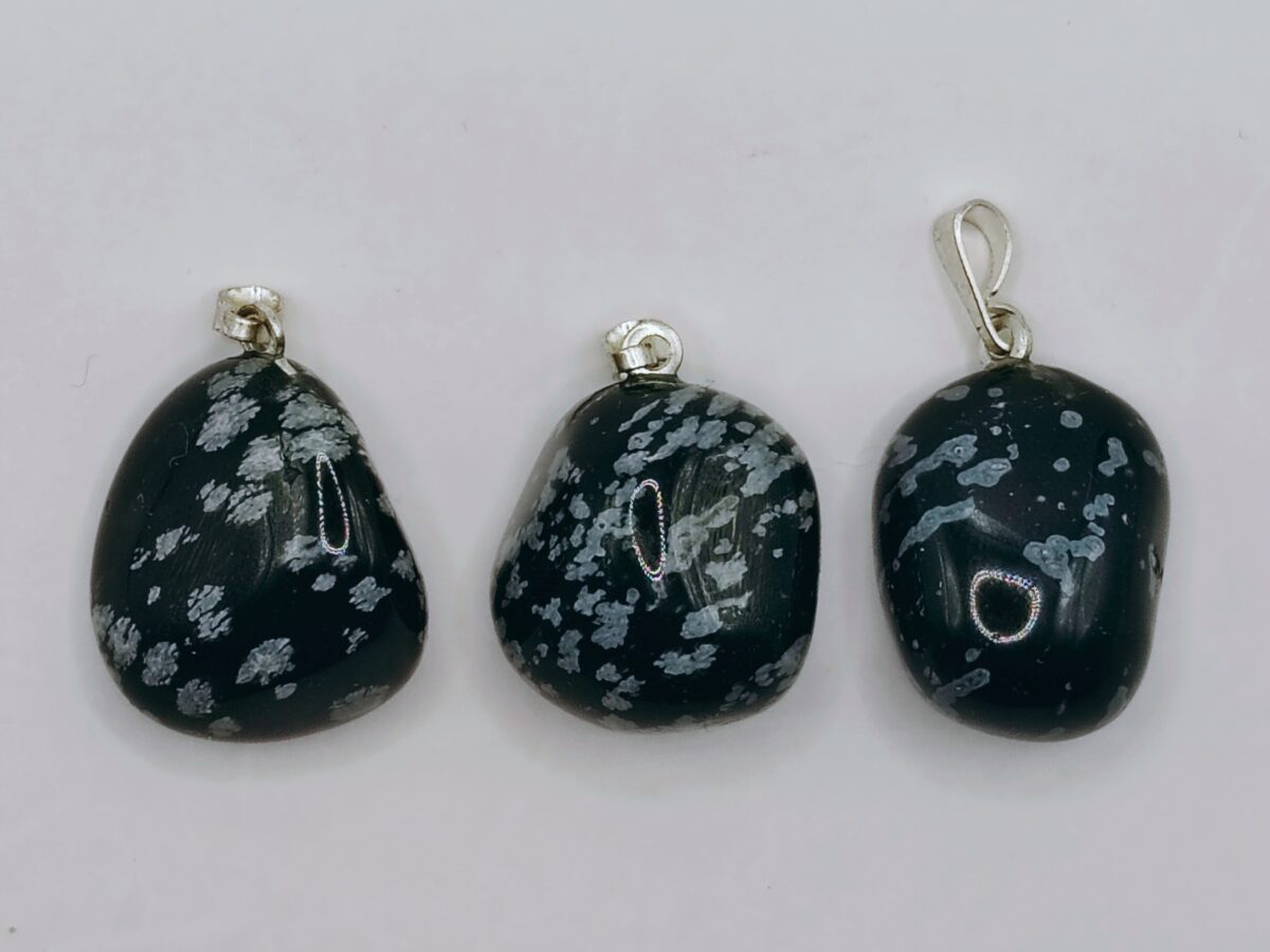 Tento prívesok je vyrobený z vločkového OBSIDIÁNU. Obsidián vzniká rýchlym ochladením lávy, je to teda prírodné sopečné sklo bez kryštalickej štruktúry. Vďaka svojmu pôvodu v sebe nesie energiu ohňa a zeme. Je to kameň bez hraníc a obmedzení, ktorý pracuje veľmi rýchlo a s veľkou silou. Často sa nazýva „zrkadlom duše“, pretože nekompromisne odhaľuje pravdu a naše tienisté stránky, ktoré nám pomáha prijať a spracovať.