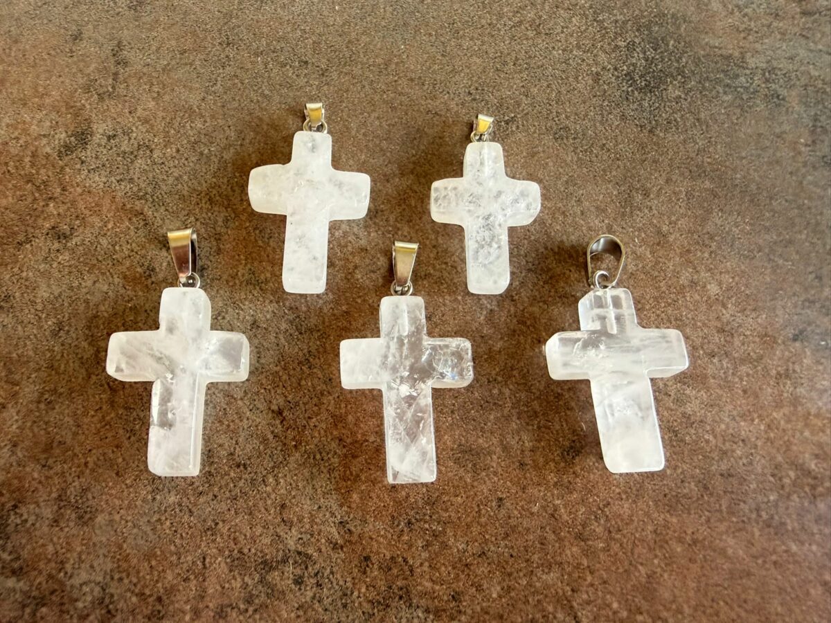 Elegantný prívesok v tvare krížika z prírodného KRIŠTÁĽU.