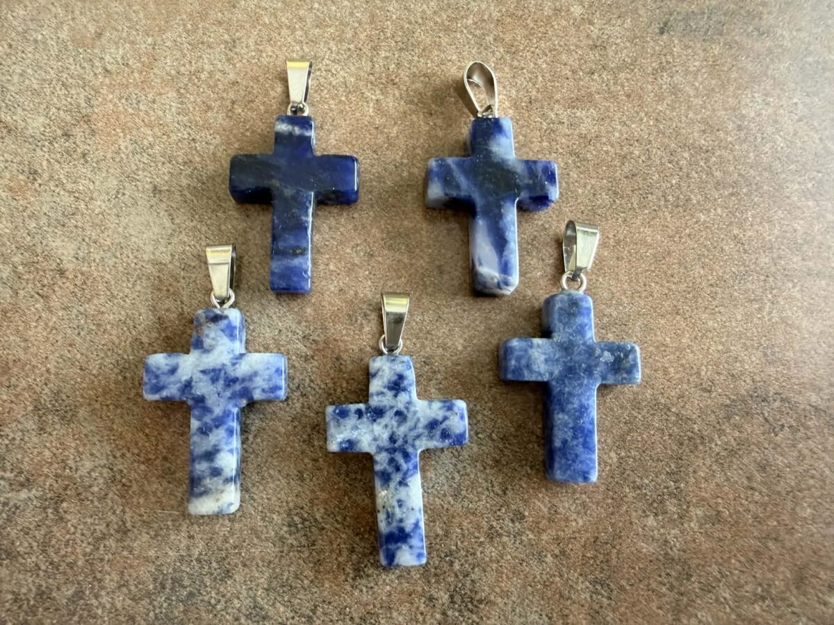 Elegantný prívesok v tvare krížika z prírodného SODALITU.
