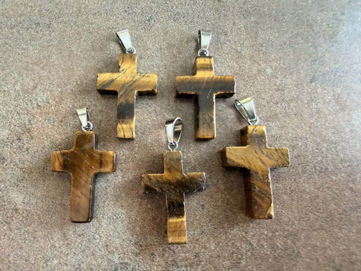 Elegantný prívesok v tvare krížika z prírodného TIGRIEHO OKA. Tento minerál je typický svojou hrou svetla a tieňa, ktorá pripomína oko šelmy. Jeho zlatisté až hnedé pásy sa pri pohybe menia a vytvárajú krásny vizuálny efekt. Je to tradične ochranný kameň, ktorý sa nosil ako talizman proti nepriateľským myšlienkam a kliatbám.