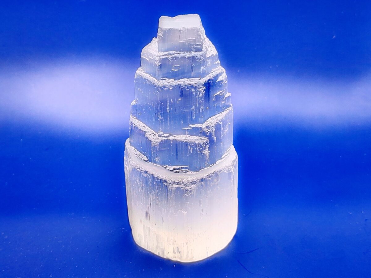 Selenit je kameň s veľmi jemnou, no vysokou vibráciou. Otvára korunnú čakru, sprostredkováva prístup k anjelskému vedomiu a vnáša do mysle jasnosť.