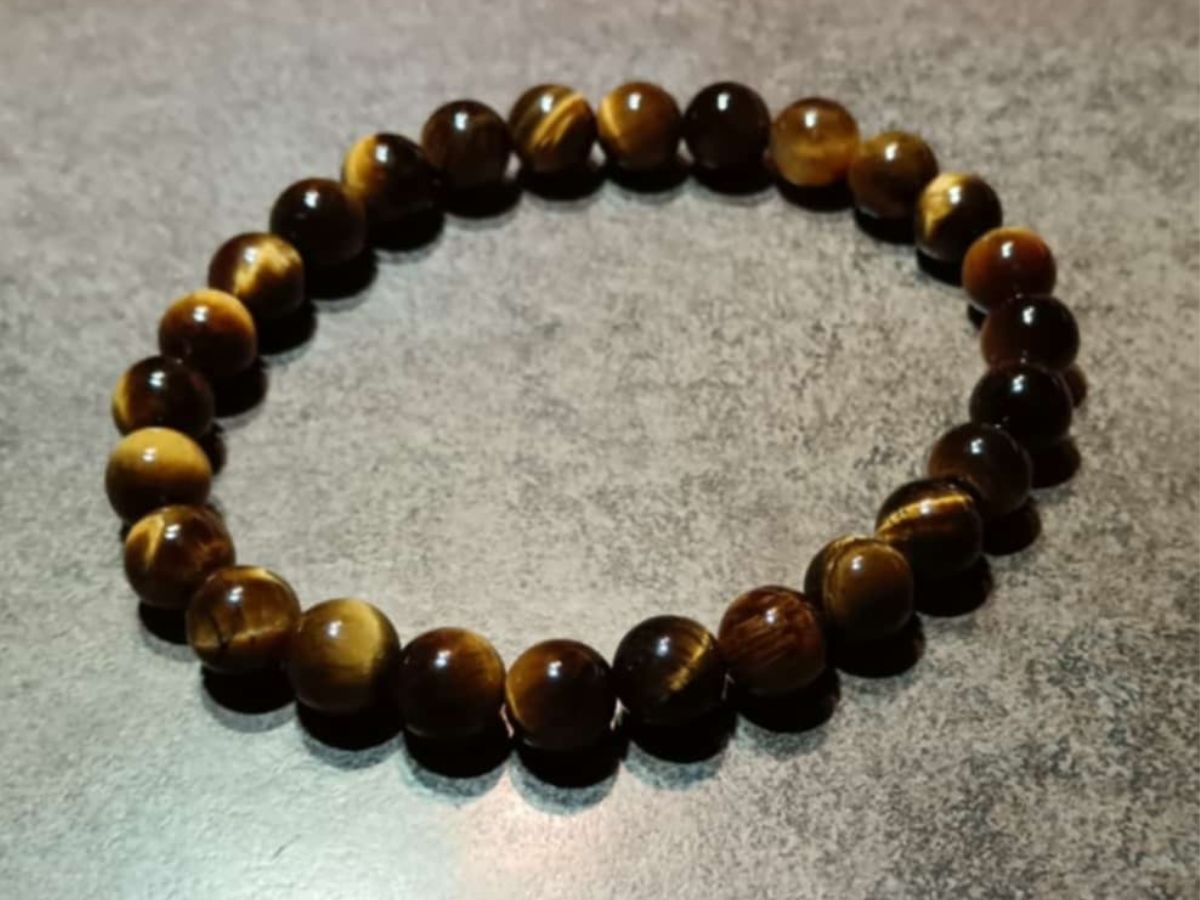 Náramok z korálok veľkosti 8 mm z prírodného tigrieho oka. Je navlečený na odolnej gumičke a má univerzálnu veľkosť pre obvod zápästia 15 -18 cm. . Ilustratívne zobrazenie. Farba sa môže pri každom kuse mierne líšiť.